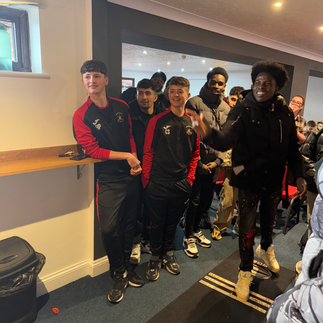 The next part of the day involved football training, where the Academy coaching staff put everyone through their paces with an academy-style session. There were drills, small-sided games, and of course, a penalty shootout to add some friendly competition! After the action-packed session, everyone gathered for a shared lunch and some downtime. In true community spirit, a few rounds of darts provided a fun, relaxed way to wind down.